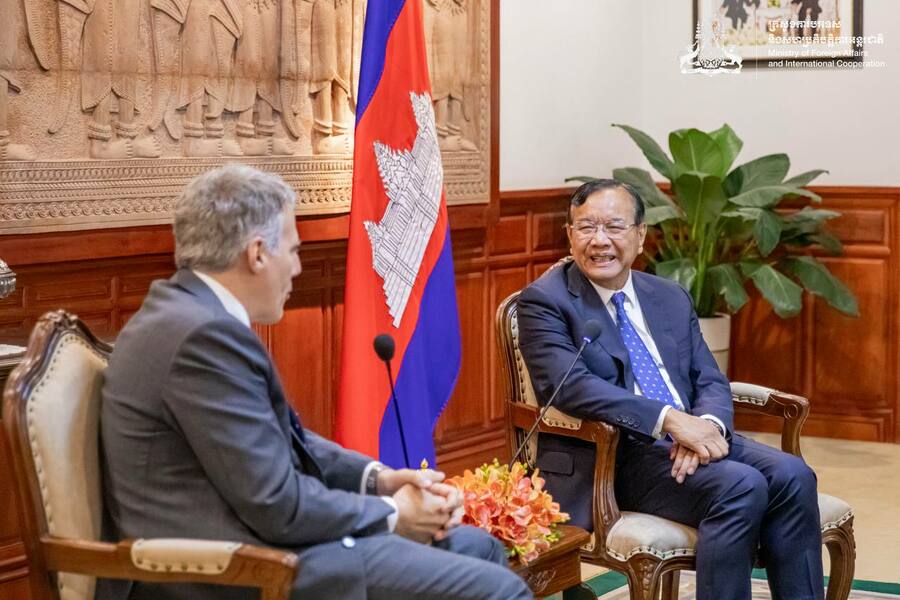 នៅព្រឹកថ្ងៃទី២២ ខែមករា ឆ្នាំ២០២៦ ឯកឧត្តមឧបនាយករដ្ឋមន្ត្រី ប្រាក់ សុខុន រដ្ឋមន្ត្រីការបរទេស និងសហប្រតិបត្តិការអន្តរជាតិ បានទទួលជំនួបសម្តែងការគួរសមរបស់ ឯកឧត្តម Christian DesRoches ឯកអគ្គរដ្ឋទូតវិសាមញ្ញ និងពេញសមត្ថភាពនៃប្រទេសកាណាដា ប្រចាំព្រះរាជាណាចក្រកម្ពុជា នៅទីស្តីការក្រសួង។