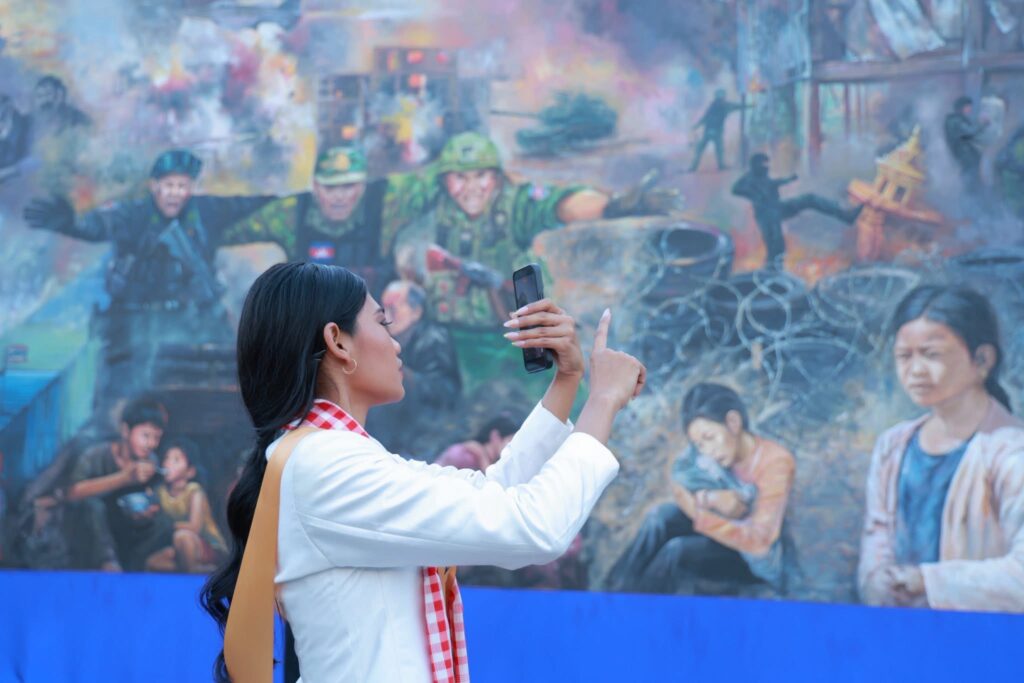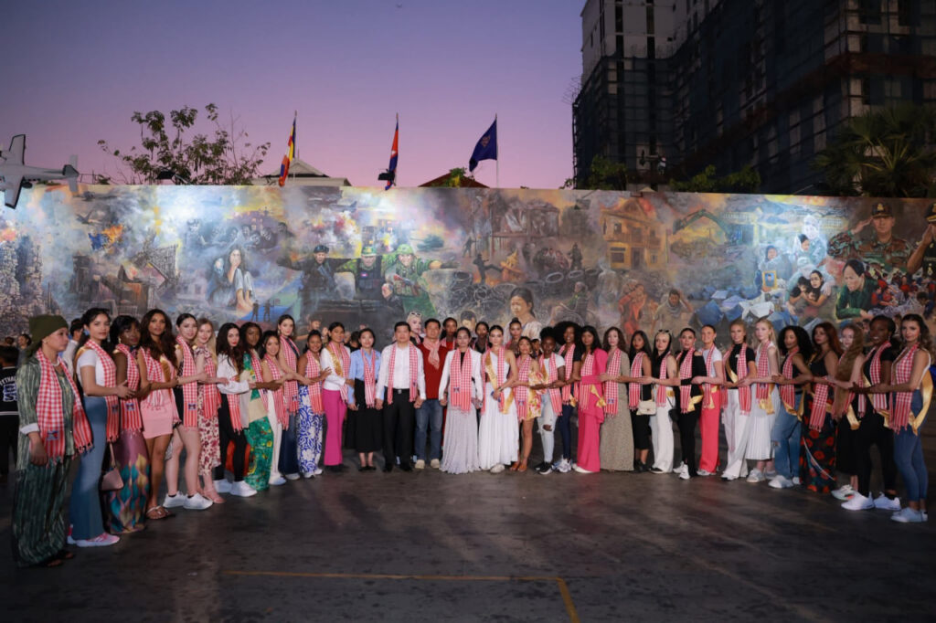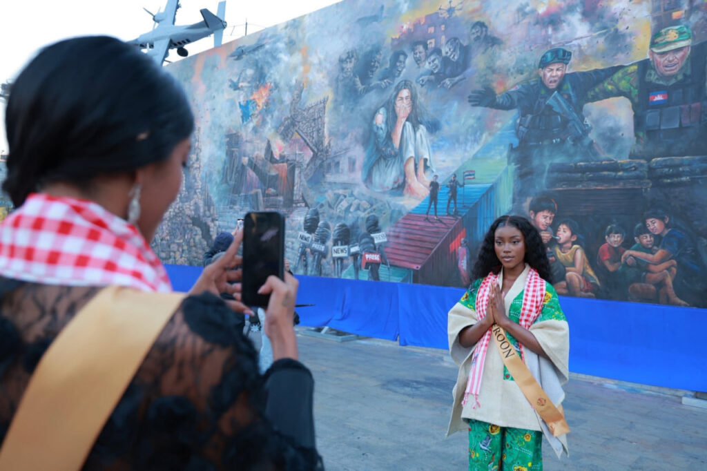 បវរកញ្ញាឯកភពផែនដីអន្តរជាតិ (Miss Planet International 2025) មកពី ៣៥ ប្រទេសជុំវិញពិភពលោក បានអញ្ជើញចុះពិនិត្យមើលផ្ទាំងគំនូរសិល្បៈដ៏ធំដែលមានប្រវែង ៣៥ ម៉ែត្រ នៅកណ្ដាលរាជធានីភ្នំពេញ។ ផ្ទាំងគំនូរនេះត្រូវបានបង្កើតឡើងក្រោមប្រធានបទ «សិល្បៈដើម្បីសន្តិភាព» ដើម្បីបង្ហាញដល់ភ្ញៀវអន្តរជាតិឱ្យបានជ្រាបពីស្លាកស្នាមនៃការឈឺចាប់ ការខ្ទេចខ្ទាំ និងការបំផ្លិចបំផ្លាញប្រាង្គប្រាសាទ ទេវរូបសាសនា និងហេដ្ឋារចនាសម្ព័ន្ធ ដែលប្រជាជនកម្ពុជាបានឆ្លងកាត់ក្នុងបរិបទជម្លោះព្រំដែនកម្ពុជា-ថៃ នាពេលកន្លងមក។